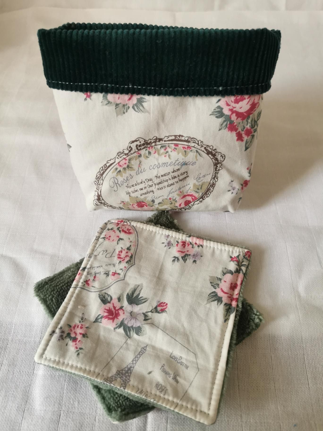 pochette réversible avec 5 cotons lavables en coton imprimé et éponge de bambou
