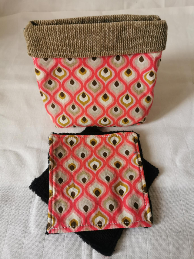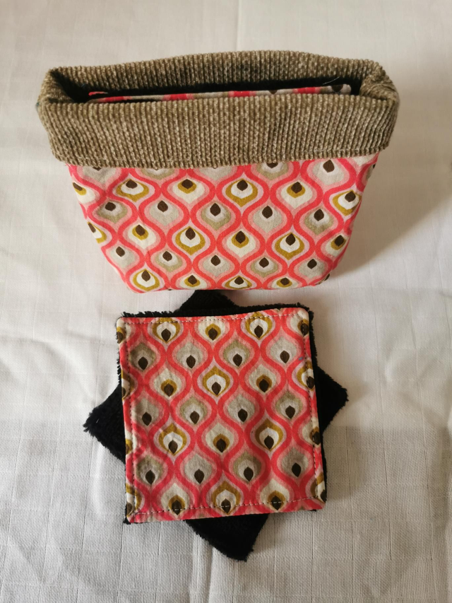Pochette réversible avec 5 cotons lavables en coton imprimé et éponge de bambou