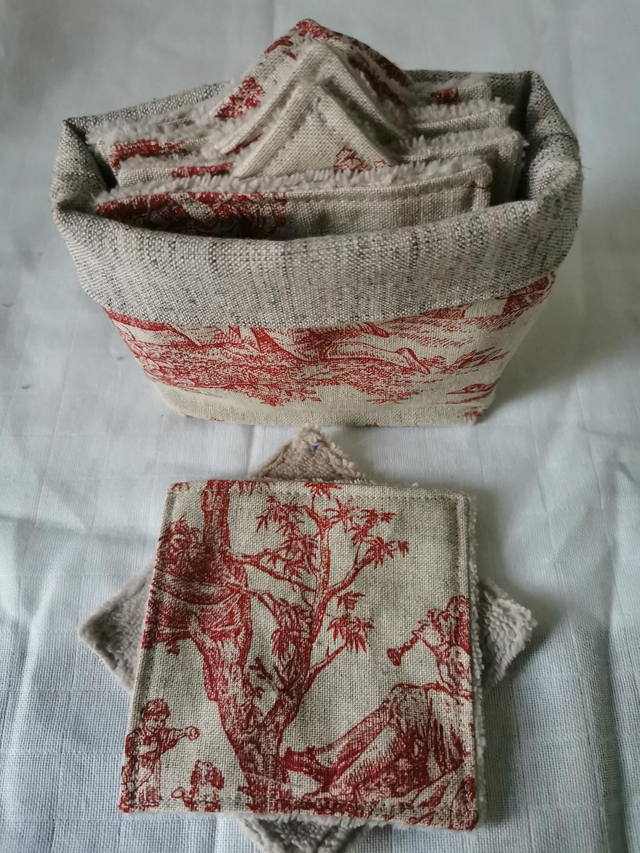 Panier réversible avec 10 cotons lavables en coton imprimé et éponge de bambou